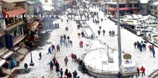मनाली में बर्फ के फाहों ने किया पर्यटकों का स्वागत