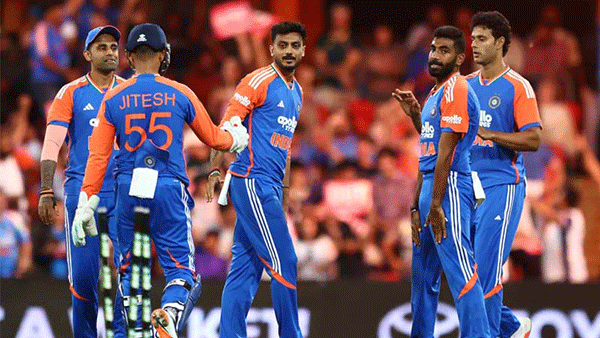 ऑस्ट्रेलिया एक समय दो विकेट पर 70 रन बनाकर अच्छी स्थिति में था लेकिन इसके बाद भारतीय गेंदबाजों के बेहतरीन प्रदर्शन के सामने उसने अपने अंतिम आठ विकेट 49 रन जोड़कर गंवा दिये। सुंदर ने तीन विकेट निकाले जबकि अक्षर पटेल और शिवम दुबे ने दो-दो विकेट लिये।