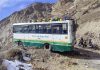 लाहौल में अनियंत्रित होकर खाई में गिरने से बची HRTC बस,...