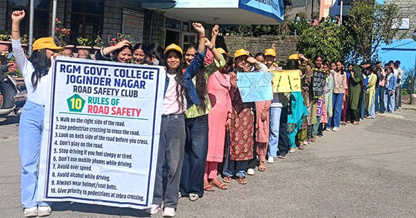 जोगिन्दरनगर : राजीव गांधी स्मारक राजकीय महाविद्यालय जोगिन्दरनगर में सोमवार को प्रोफेसर उपमा धीमान की अध्यक्षता में सड़क सुरक्षा क्लब द्वारा सड़क सुरक्षा जागरूकता बारे कार्यक्रम का आयोजन किया गया।