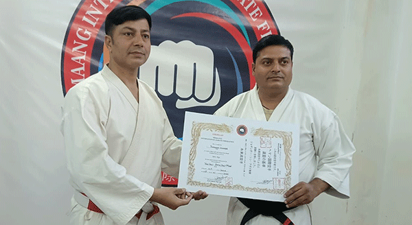 शितो रियू कराटे शैली में ब्लैक बेल्ट ग्रेडिंग परीक्षा में जोगिन्दरनगर के सेंसई राकेश कुमार ने चौथी डिग्री ब्लैक बेल्ट की परीक्षा सफलतापूर्वक उत्तीर्ण कर शिविर की गरिमा बढ़ाई ।