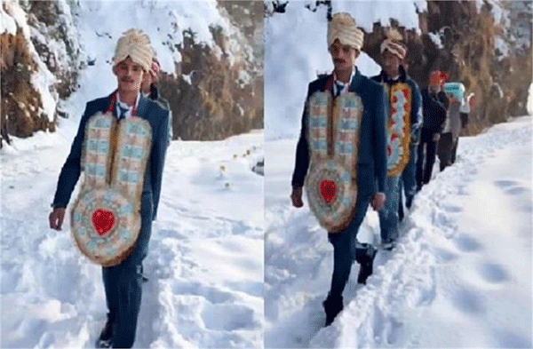 जानकारी के मुताबिक, जिले के सराज क्षेत्र में 23 जनवरी को हुई भारी हिमपात के कारण सड़कें बंद हो गईं और अंधेरा छा गया, लेकिन गितेश ठाकुर का हौसला डगमगाया नहीं। बताया जा रहा है कि बुनालीधार निवासी गितेश ठाकुर का विवाह 24 जनवरी को बैंचड़ी निवासी ऊषा ठाकुर से तय था।